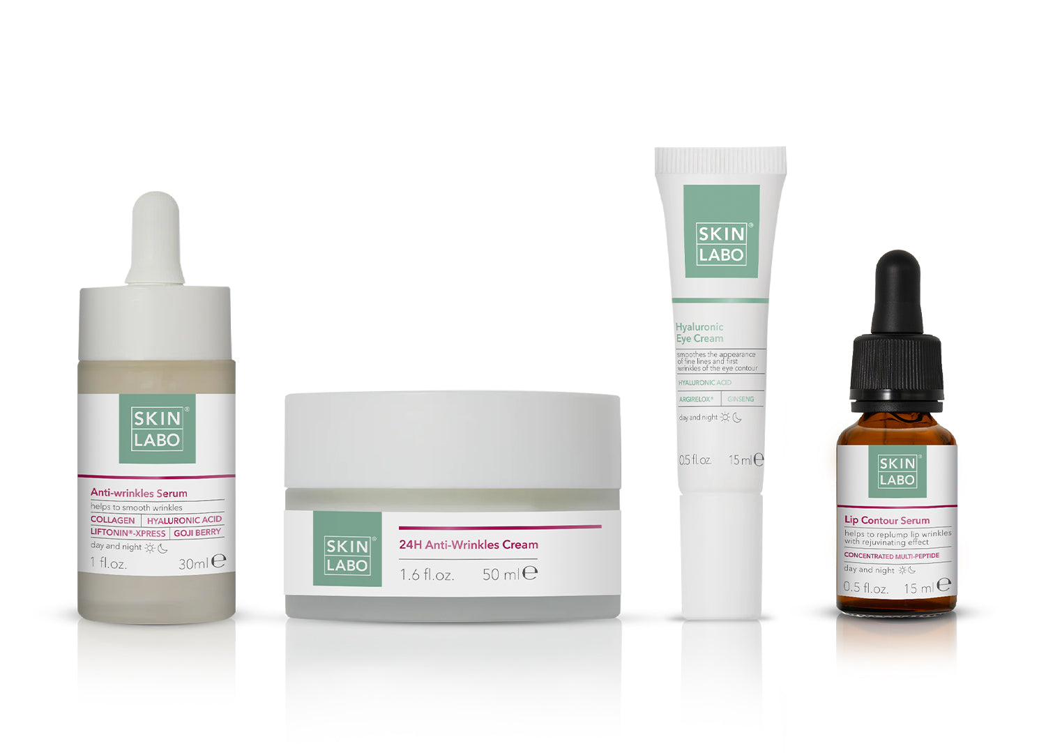 After cleansing and before applying the cream, apply a few drops of the Anti-Wrinkle Serum (1) and pat into the skin to help its absorption.