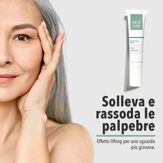 Apply a small amount of the Eyelid Lifting Serum (4) on the eyelid moving from the inner to the outer corner of the eye.